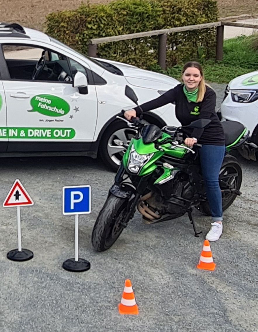 Gestartet habe ich in der Verwaltung, seit 2021 bin ich auch als Fahrlehrerin für die Klassen B, BF17, B197 und BE unterwegs.